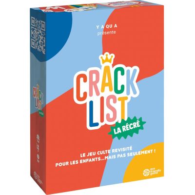 Redécouvrez le Petit Bac avec Crack List à la récré, une version revisitée et pétillante du célèbre jeu de lettres, spécialement conçue pour les enfants dès 7 ans. Un jeu d'ambiance familial qui fait autant appel aux connaissances qu'à la spontanéité, pour des parties pleines d'énergie et d'imagination où rires et bonne humeur sont garantis. > voir détail