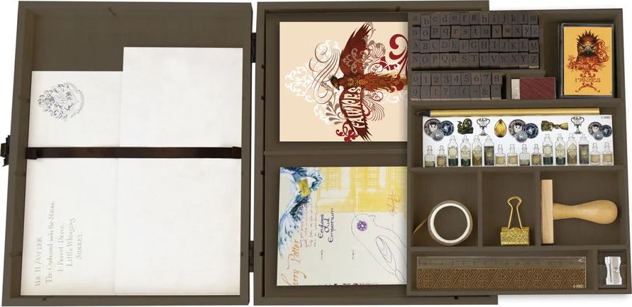 Retrouve dans ce magnifique coffret en bois vieilli tout le nécessaire pour réaliser tes courriers et même un vrai journal avec des lettres d'imprimerie.
