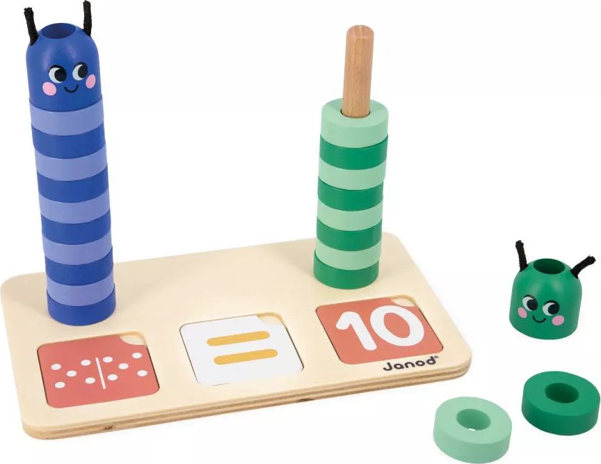 C'est tellement plus facile d'apprendre à décomposer les nombres quand c'est drôle ! Nos 2 chenilles malicieuses sont prêtes à aider les tout-petits dans l'apprentissage des compositions et des comparaisons! Les enfants devront s'aider des perles de couleurs formant le corps des chenilles pour représenter les nombres des 33 cartes du jeu. Les nombres à reconnaitre peuvent prendre la forme de chiffres, des doigts de la main ou de la constellation d'un dé.