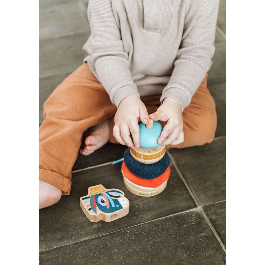 Cette pyramide à empiler originale et gaie, réalisée en différents matériaux, développe la motricité fine des petits bouts. Empilez les éléments et donnez libre cours à votre créativité. Les matériaux et les couleurs de nature différente éveillent les sens.