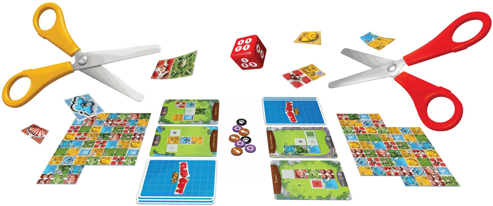 Découpez astucieusement votre feuille de terrains (à l'aide des ciseaux fournis pour chaque joueur dans la boîte de jeu) pour réaliser vos objectifs de construction des plus beaux parcs de la ville!