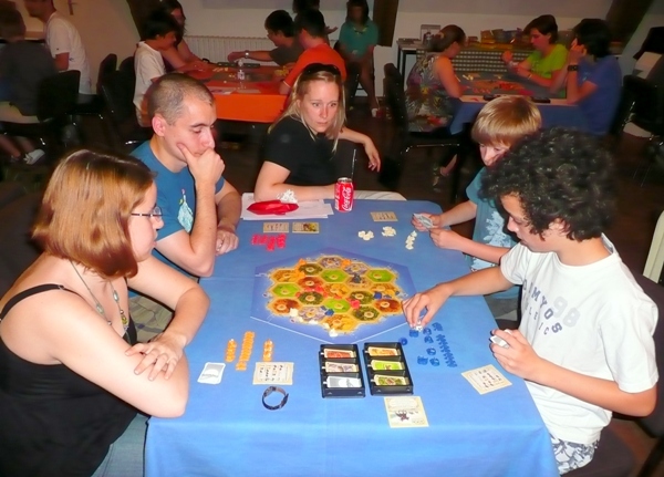Un jeu simple, qui ne nécessite pas de grands développements stratégiques. J'aime le principe d'échanges de matières premières entre les joueurs, pour autant que chacun y mette du sien, car un joueur trop timide/méfiant ou une coalition contre un des protagonistes peut parfois plomber l'intérêt du jeu. J'avoue par contre ne pas avoir saisi tout l'intérêt des cartes développement, avec un trop grand nombre de chevaliers comparativement aux cartes progrès, plus interactives. Je n'ai pas eu l'occasion d'essayer les extensions.