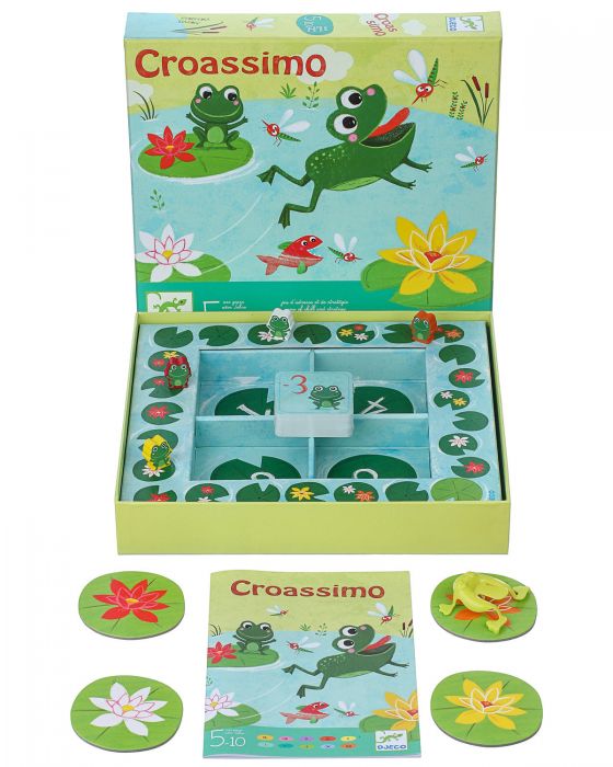 Croassimo est basé sur le principe du célèbre "jeu de puces": les joueurs, tour à tour, vont faire sauter la grosse grenouille dans la mare. Le nombre sur lequel cette dernière atterrira permettra alors au joueur d'avancer son pion d'autant de cases sur le parcours. Lorsque le pion aboutit sur un ou plusieurs nénuphar(s) en fleurs, le joueur pioche autant de cartes que de fleurs.L'avis des joueurs