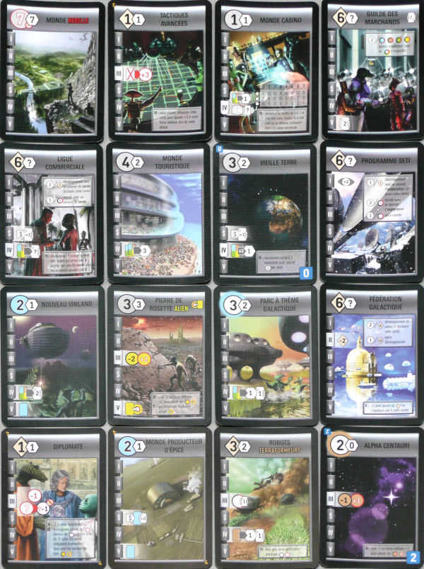 J'ajoute que toutes ces jolies cartes font de nombreux clins-d'yeux à des classiques de la science-fiction. Personnellement, j'ai détecté des inspirations de Star Wars, Dune, le cycle des Fondations d'Asimov etc.
