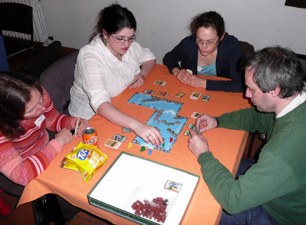 Le principe du jeu - Les joueurs ont chacun 2 ou 3 figurines de bûcherons, et un tas de cartes permettant de les faire progresser. L'objectif est d'être le premier joueur à amener ses bûcherons sur la ligne d'arrivée.