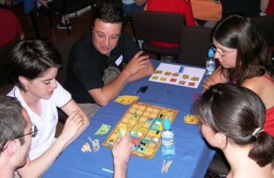 Qu'est-ce qui rend Santiago aussi parfait? Selon moi deux éléments. En premier lieu, une alchimie d'ingrédients qui se marient à merveille: des enchères pour déterminer l'ordre des tours, des choix cornéliens de placement, des alliances temporaires indispensables malgré la compétition (pour regrouper les parcelles et soudoyer l'irrigateur), des négociations serrées (faites d'alliances et de cadeaux empoisonnées, comme lorsque l'irrigateur est forcé d'accepter une offre malgré lui). En second lieu, la très grande interactivité entre les joueurs. Santiago est un jeu de pure compétition (à contrario des Chevaliers de la Table Ronde qui est un jeu de coopération), et pourtant les joueurs passent la majeure partie du temps à discuter et négocier.