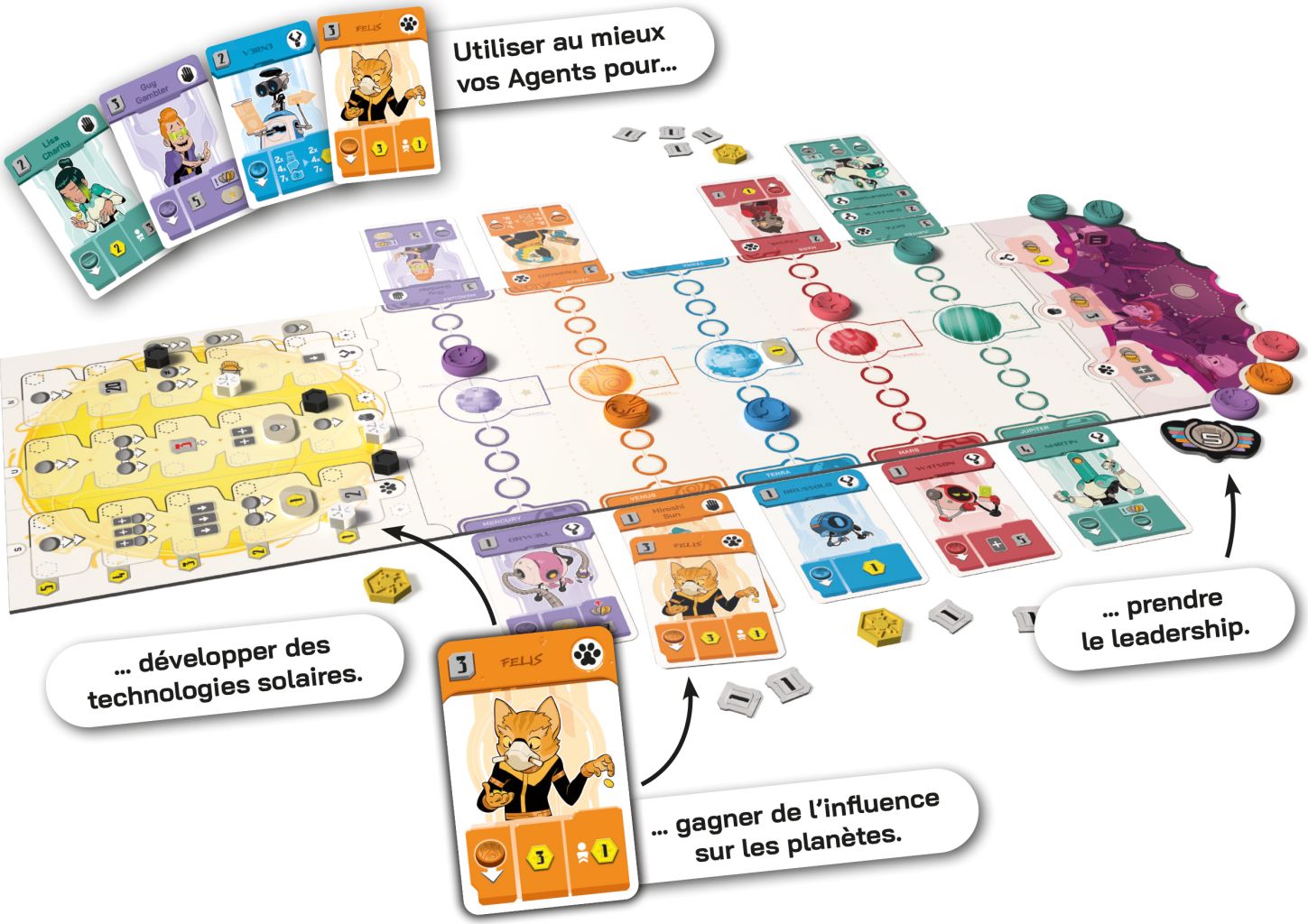 Le jeu se déroule sur un plateau représentant cinq planètes du système solaire. Chaque joueur incarne une faction et dispose de cartes Agent aux capacités variées. À chaque tour, un joueur peut: