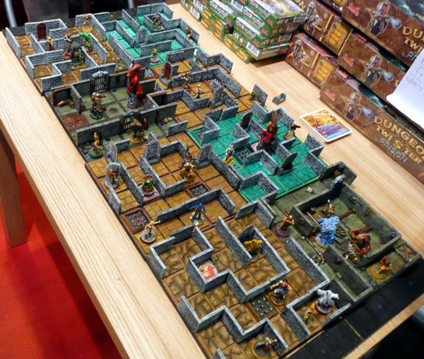 | Un autre retour, cette fois à une des tables de Dungeon Twister, où les salles du labyrinthe se dévoilent progressivement. | |