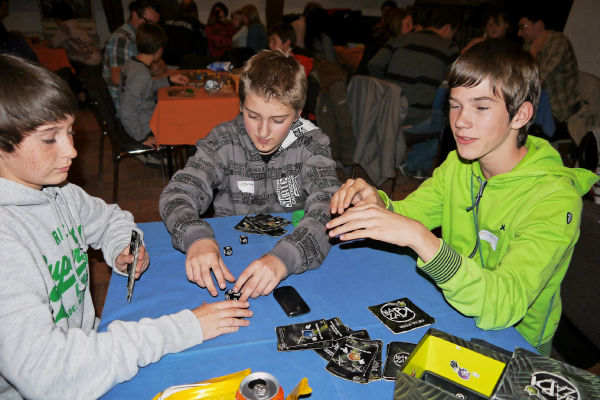 | Wazabi: avec Rök, Gigamic lance une gamme de petits jeux d'ambiance en boîtes cubiques. Ici, le but est de se débarrasser de ses dés, en lançant les dés et en jouant des cartes aux pouvoirs spéciaux. | |
