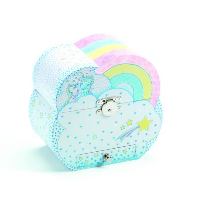 Une jolie boite à bijoux musicale en forme de nuage qui plaira beaucoup aux jeunes filles fans de licornes. Votre enfant ouvrira son nuage arc-en-ciel, s'admirera devant le miroir et regardera danser la licorne qui s'animera en musique à l'ouverture de la boite! > voir détail