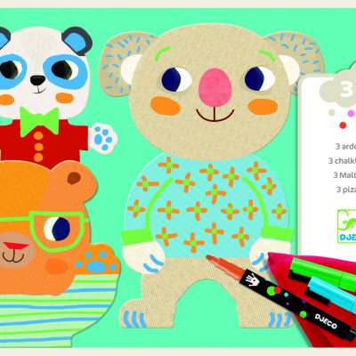 Décore ces trois petits oursons selon ta fantaisie. Tu veux changer le pull du Koala? Hop, un coup de chiffon et les lignes deviennent des fleurs! > voir détail