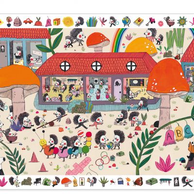 Magnifique puzzle observation. Une fois le puzzle terminé, cherche dans l'image les nombreux détails situés autour de l'école des hérissons! > voir détail