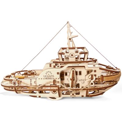 169 pièces en bois à assembler pour construire ce remorqueur, et le faire avancer grâce à un moteur à élastique en imitant le tangage et le bruit du moteur diésel d'un vrai bateau. > voir détail