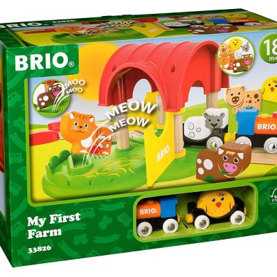 Ma première ferme sonore est un coffret adapté aux tout-petits et qui leur permet de découvrir le circuit de chemin de fer en bois BRIO de manière ludique. Ce coffret offre des heures de jeu aux jeunes enfants et les aide à découvrir, à leur rythme, les animaux de la ferme. Les cinq animaux en bois entrent dans le wagon pour animaux prêts à être transportés par train jusqu'à la ferme. Chaque animal émet trois sons distincts, qui sont automatiquement activés lorsqu'ils sont placés dans le pré de la ferme. Il n'a jamais été aussi ludique d'apprendre à découvrir les animaux ! > voir détail