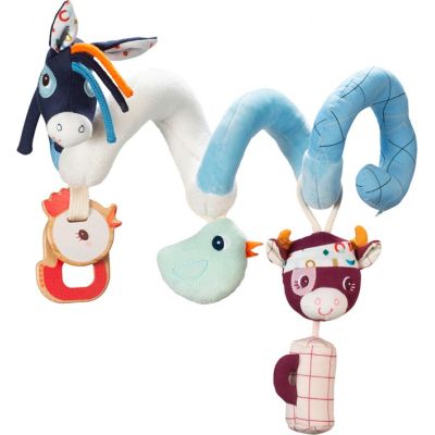 Des sons et textures étonnants, des couleurs contrastantes…, Cette spirale offre une multitude d'activités, conçues pour stimuler les sens de bébé pendant la promenade ou en voiture. Se fixe facilement à un siège d'auto, un parc ou un portique d'activités. > voir détail