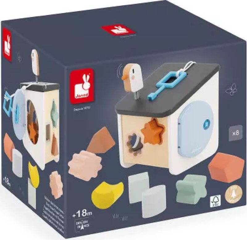 Cette boîte à formes en bois aux airs de cabane à oiseaux est destinée aux bébés dès 18 mois. Encastrer les formes permet à votre tout-petit de développer sa dextérité, mais aussi sa reconnaissance des formes et des couleurs. > voir détail