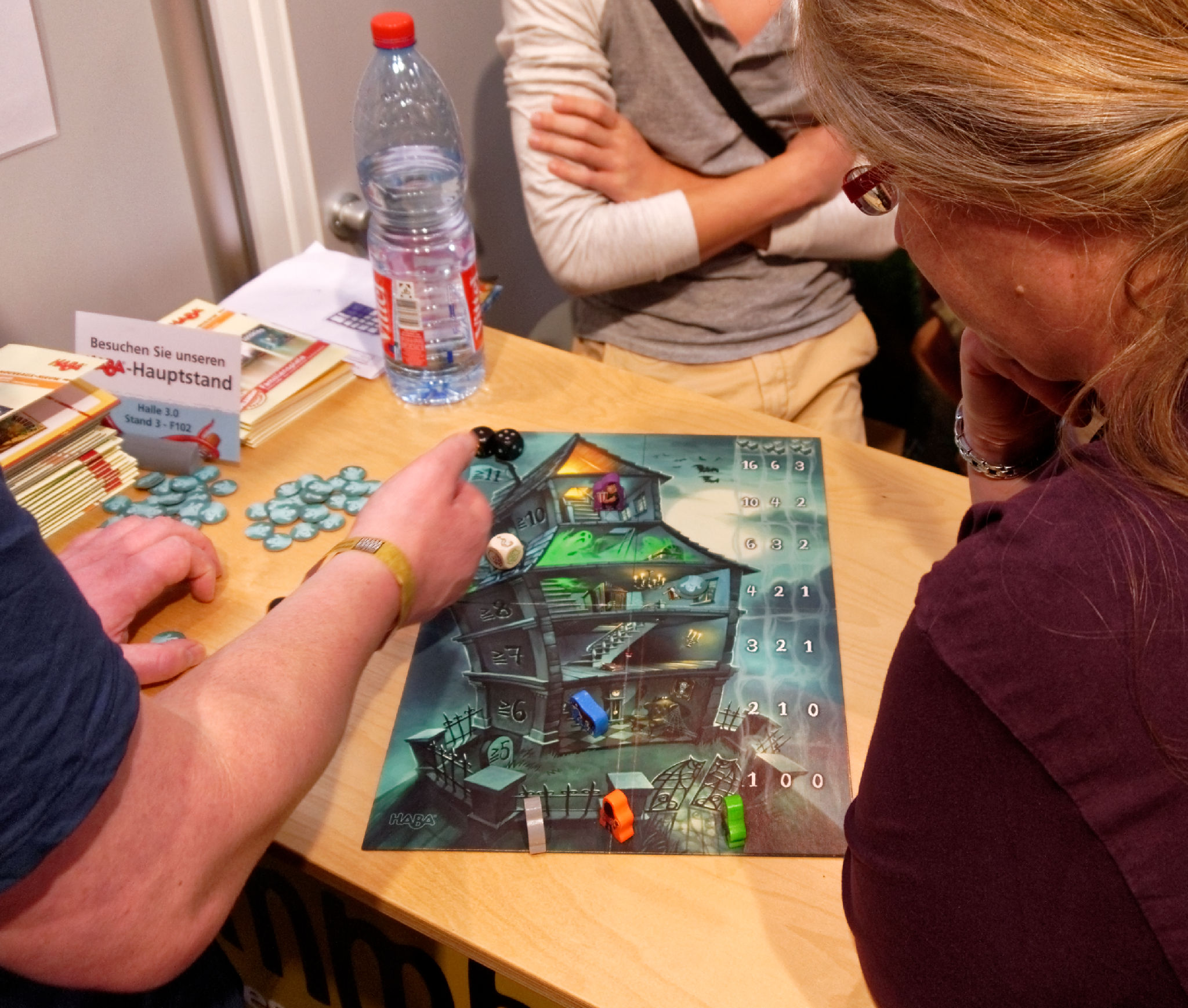 Forcément, la star du grand stand Zoch est Gare à la toile, le jeu de Roberto Fraga qui vient de remporter le "Kinderspiel des Jahres 2015", le jeu de l'année pour enfants en Allemagne. Du coup, une famille qui joue a même eu droit à un passage à la télé! |